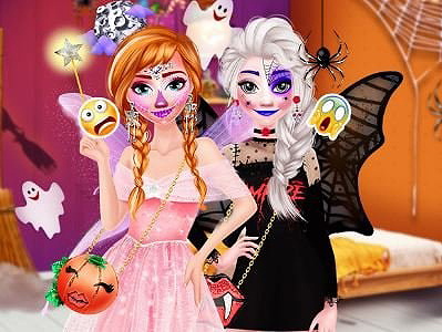 Elsa et Anna célèbrent Halloween dans ce nouveau jeu génial appelé Frozen Sisters Halloween Party! Aidez-les à paraître effrayants mais mignons et amusez-vous avec eux dans un jeu de fantômes mignon. Ils auront sûrement fière allure et ils s'amuseront beaucoup grâce à vous! S'amuser!